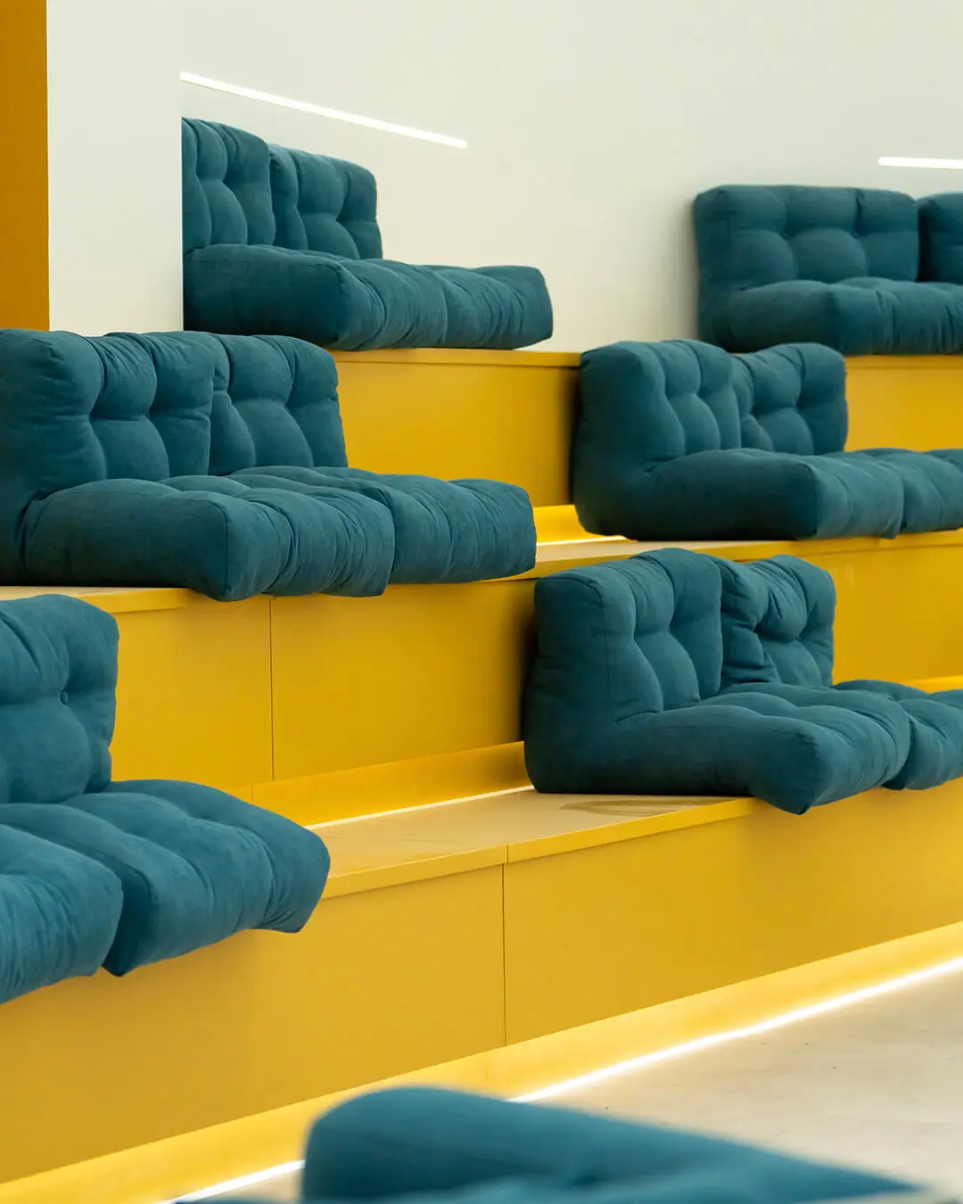 To overcome the challenges, we developed a vibrant color palette that energizes the space while preserving a sophisticated and professional look. We designed versatile zones featuring modular seating arrangements and clear sightlines to support various work styles and foster collaboration. Additionally, we selected high-quality, comfortable furniture and durable finishes that ensure long-term functionality and aesthetic appeal.